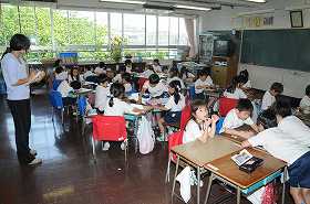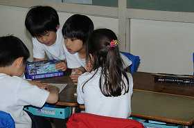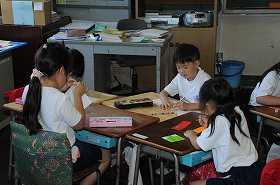 クラスの目標を班ごとに話し合っています。