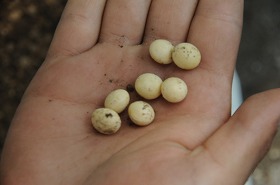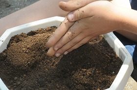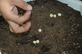 大豆の種を植えています。