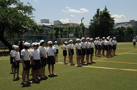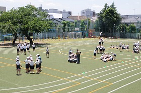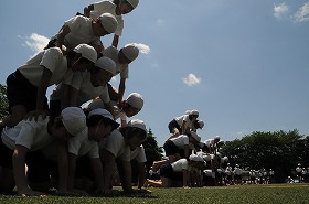 5・6年合同で組体操の練習をしています。