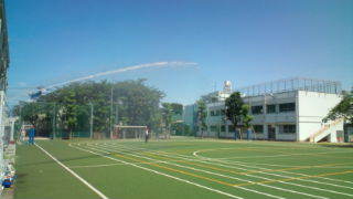 気温が上昇してきたので、熱中症対策の一環として、子どもが活動していない時間帯にスプリンクラーで散水しています。