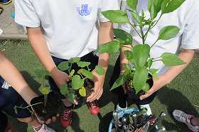 野菜名人になるために、トマト、おくら、ピーマンなどを植えています。