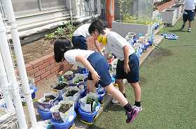 野菜名人になるために、トマト、おくら、ピーマンなどを植えています。