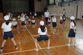 運動会の表現の練習を友だちと教え合いながら進めています。