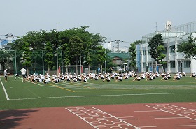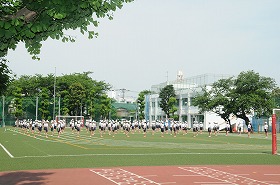 校庭で、流れに沿って練習をしています。