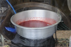 ※写真は、お祝い紅白ゼリー用のいちごのソースを冷ましているところです。