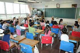 生活科の活動を進める上での質問に、手を挙げて答えています。