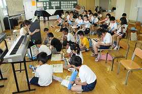 「かっこう」を鍵盤ハーモニカで演奏する練習をしています。