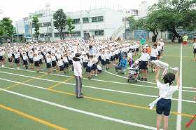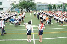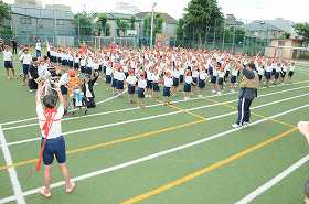 得点発表の後で、赤組と白組が優勝したことを想定し、団長がそれぞれの組に報告しています。