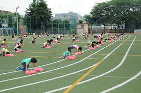 運動会を明日に控え、1年生が最後の練習をしています。