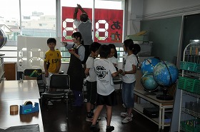 得点板を窓に付けています。得点板は今年から新しくなりました。