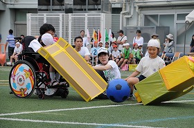 プログラム14番 わかたけ学級による団体競技「クラッシュザウルス」です。