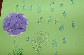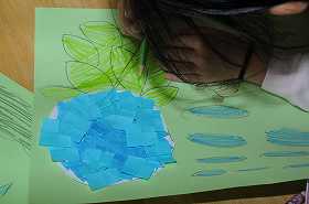 あじさいの花をちぎり絵で表現しています。