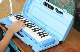 鍵盤ハーモニカの練習をしています。