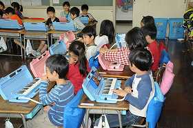鍵盤ハーモニカの練習をしています。