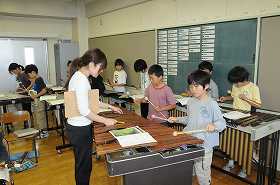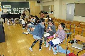 トンビの合奏のパート練習をしています。