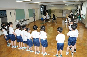 1年2組の子どもたちが校医による耳鼻科検診を受けています。今日1日で全校児童が検診を受けます。