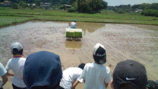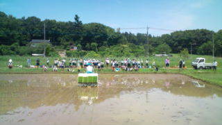 東松山の田んぼにいます。機械による田植えを見せていただいています。11:55
