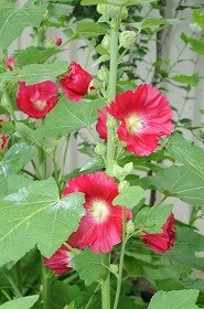 立葵の赤い花が咲いています。