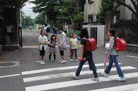 代表委員会の子どもたちが、校門に立ち「モーニングあいさつ運動」をしています。