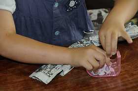新聞紙を使って、トンボを作ります。