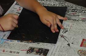 ひっかき絵を作っています。