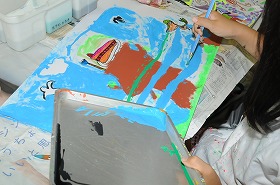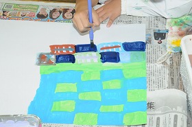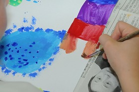 「ひろがるせかい」をテーマに、絵の具で書くことを楽しみ、世界を広げています。