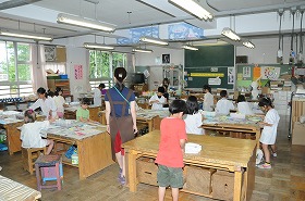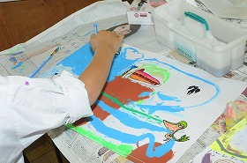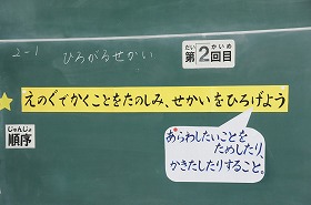 「ひろがるせかい」をテーマに、絵の具で書くことを楽しみ、世界を広げています。