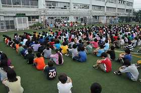 各クラスで考えた今週の生活目標を代表児童が発表しています。