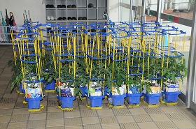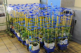 台風に備え、トマトを避難させました。