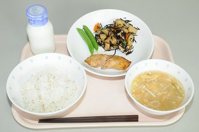 ごはん 鰆の照り焼き じゃがいものひじき煮 スナップえんどう みそ汁