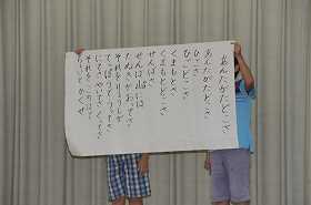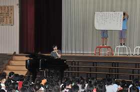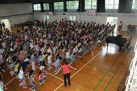 全校の子どもたちで「あんたがたどこさ」を歌っています。