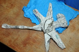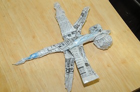 新聞紙で作ったトンボができ上がってきました。