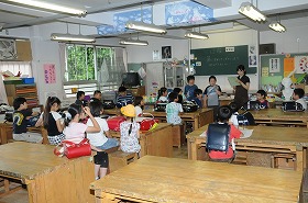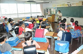 風水害を想定した避難訓練の一環といて、集団下校訓練をしています。