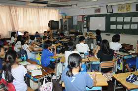 メダカの卵を顕微鏡で見て、それを映像に映して確認しています。