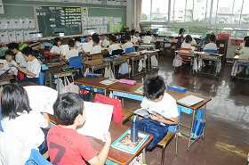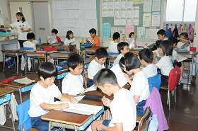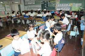 「ばけくらべ」を音読する練習を友だち同士でしています。