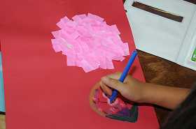 紫陽花をちぎり絵で作っています。