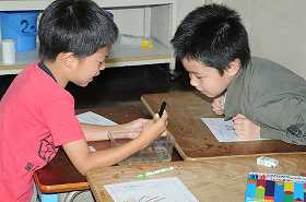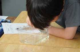 やごの観察をしています。