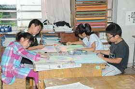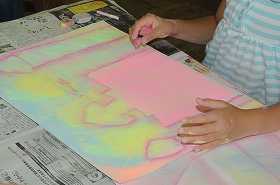 「ゆめの城」をテーマに、チョークを使って全体を塗り、ゆめのお城を描いていきます。