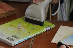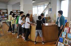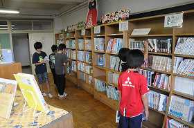 図書支援員の指導を受けながら、図書室で読書をしています。