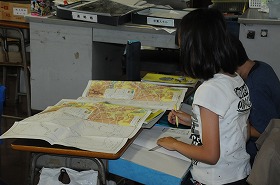 目黒区の地図を見ています。これから目黒区の学習が始まります。