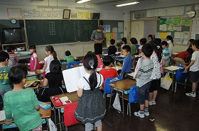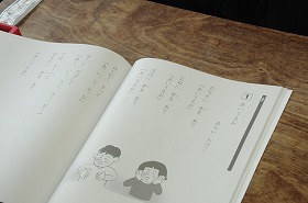 「ことばのがくしゅう」の中にある「あいうえお」をみんなで音読しています。