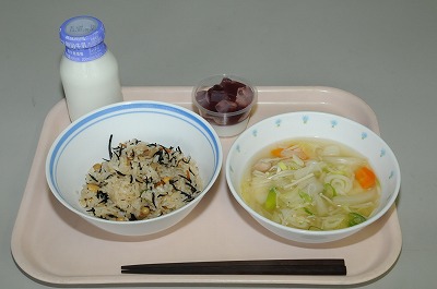 ひじきご飯 豆腐団子の野菜スープ あじさいゼリー
