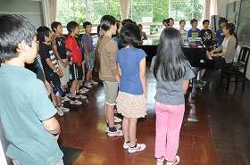 ピアノに合わせて合唱しています。とてもきれいな声です。