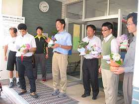 四中の先生がみんな喜んで受け取ってくれました。この紫陽花は、各担任が教室に持ち帰り、生徒に紹介して飾ってくれます。