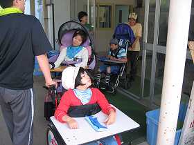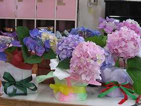 6月26日の午後に、わかたけ1組の子どもたちが作った紫陽花を四中に届けるために出発しました。
