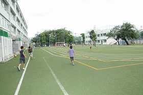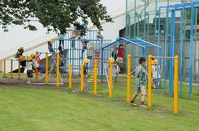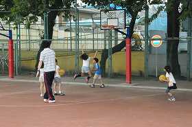 梅雨空の下ですが、子どもたちは元気に外遊びをしています。