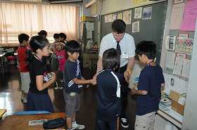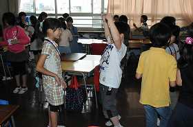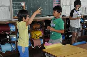 天候のカードを使い、ジェスチャーを見て相手の持っているカードを当てるゲームをしています。