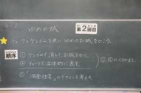 「ゆめの城」をテーマに、チョークと消しゴムを使って作品を作っています。