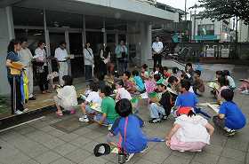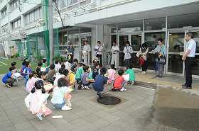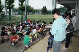 今日は4年1組の子どもたちが地域安全マップ作りをします。まず、それぞれの班が1日お世話になる地域のサポーターの皆さんを紹介しています。