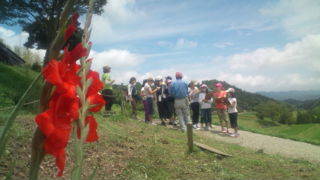 大山千枚田の棚田倶楽部にいます。後半のグループの、自然観察隊の活動が始まりました。11:35